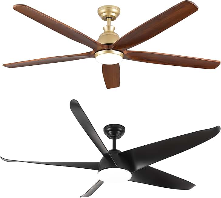 60 Inch Outdoor Ceiling Fan with Light and Remote - Solid Wood Gold Ceiling Fans with Lights + ABS Black Big Ceiling Fan with Light, Damp-Rated Large Outdoor Ceiling Fans for Patios Porch Farmhouse