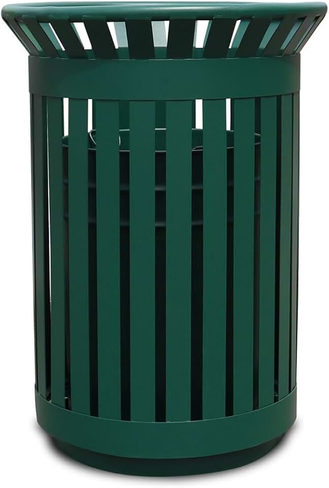 Outdoor Metal Slatted Trash Receptacle,Waste Receptacle,Commercial Trash Cans,Zone Round Garbage Bin,Square Hotel Street Patio Indoor Metal Stan (Big-Green)