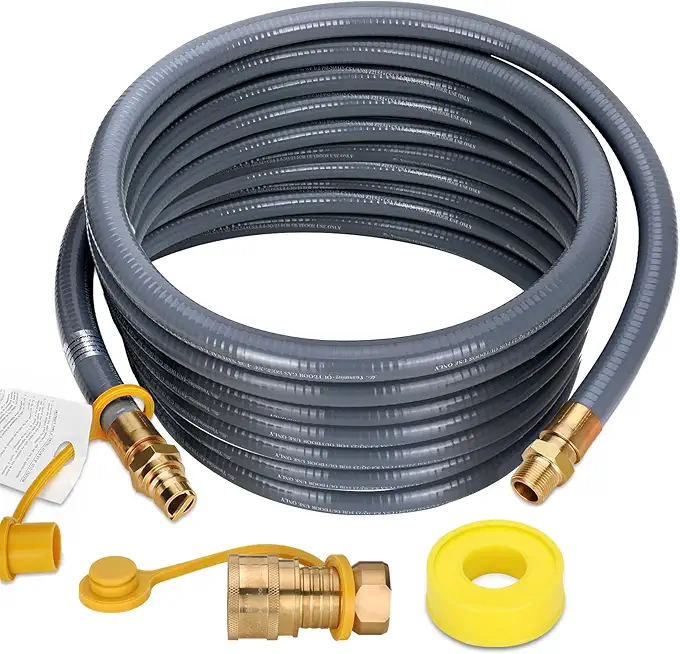 50FT 3/4" ID Natural Gas Hose with Quick Connect 3/4" ID Natural Gas Hose with Quick Connect Fittings for NG/LP Propane Appliances, Grill,Patio Heaters,Generators, Indoors & Outdoors
