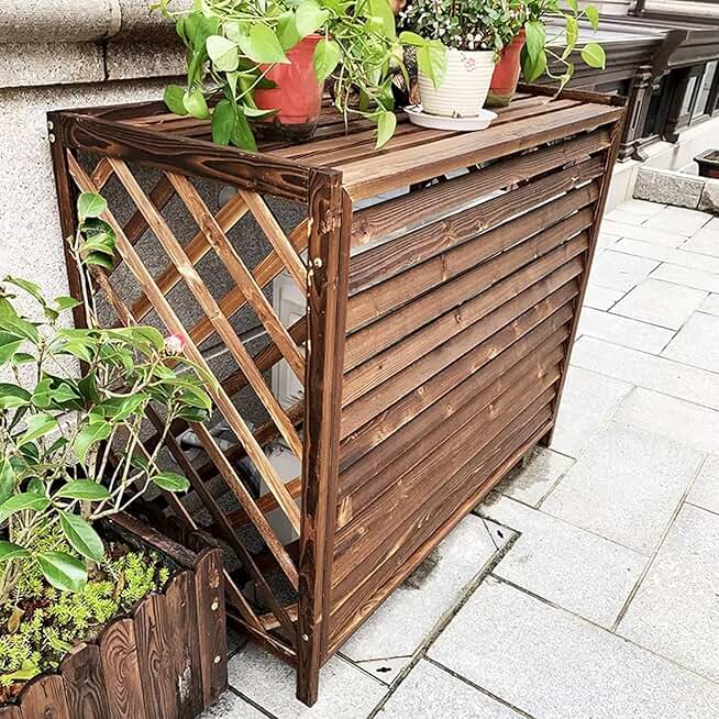 Outdoor privacy screens,air conditioner fence decorate,pool equipment enclosure,wood fence,Display Stand Plant Flower Pot,Wooden Shutter Air Conditioning Cover,Heat dissipation,ventilation,dustproof.