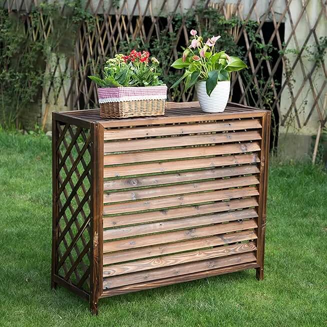 Wooden fence privacy screens decorate,outdoor air conditioner fence,wood pool equipment enclosure,Plant Flower Pot Display Stand,Shutter Air Conditioning Cover,ventilation,Heat dissipation,dustproof.