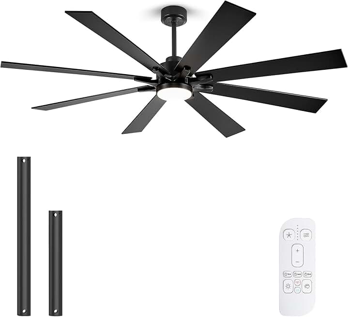 72 Inch Ceiling Fan with Lights, Large Outdoor Ceiling Fans with Light, Black Industrial Ceiling Fan 8 Blades for Great Room, Large Living Room Patio Farmhouse Damp Rated, Quiet Reversible DC Motor