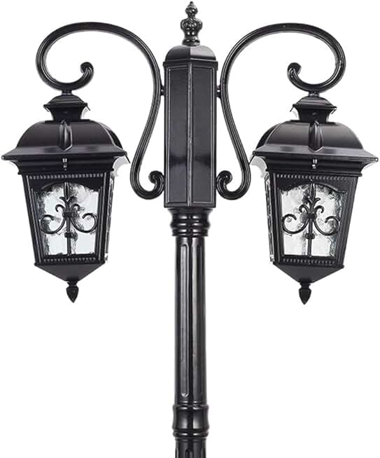 European Outdoor Retro Street Light Patio Residential Area High Pole Light Waterproof Floor Lamp Vintage Victoria Glass Lantern Lawn Garden Street Light Villa E27 Decoration Post Lamp Stadium (