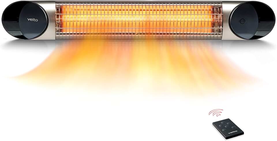 Electric Patio Heater – Infrared Heater Outdoor and Indoor Use – 1500W Veito Wall Mount Heater with Remote (Black)