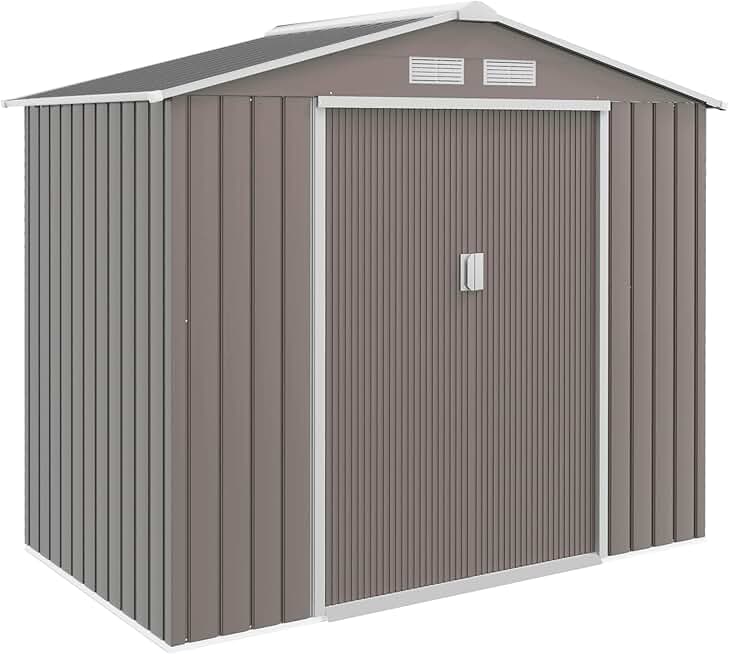 7' x 4' Outdoor Storage Shed, Garden Tool House with Foundation Kit, 4 Vents and 2 Easy Sliding Doors for Backyard, Patio, Garage, Lawn, Gray