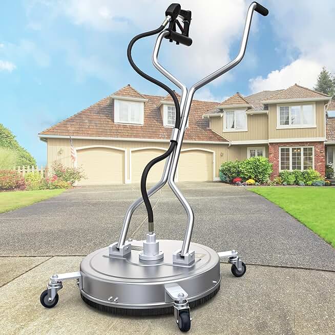 Hourleey 24" Pressure Washer Surface Cleaner with Dual Handles, Stainless Steel Surface Cleaner with 4 Wheels for Driveways, Pathway, Sidewalks, Patios, Decks, 4500 PSI with 3/8" Quick Connector Kit