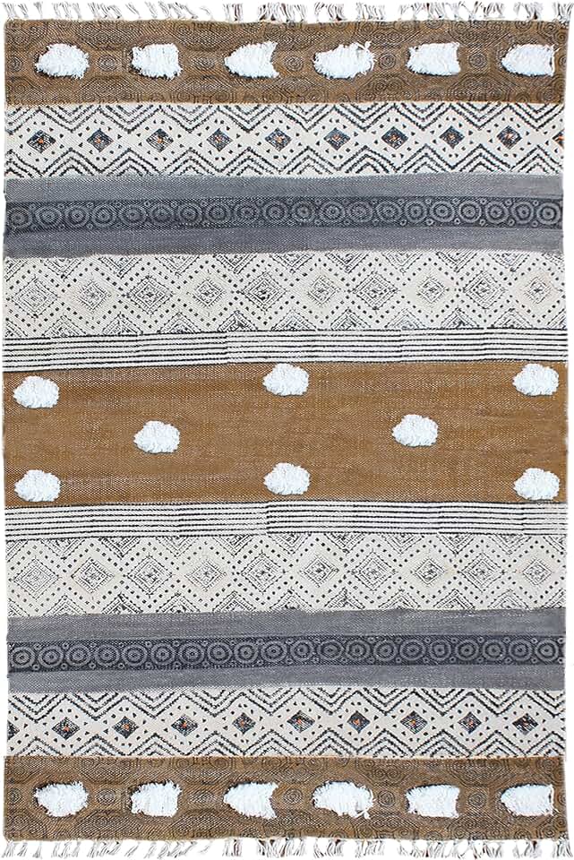 Kilim Rug 9x12 Area Rugs for Flatweave Rug Beige Brown Cotton Rug Washable Dhurrie Indoor Outdoor Use Rugs for Large Area Dining Room Living Room Hall Room Patio Doormat