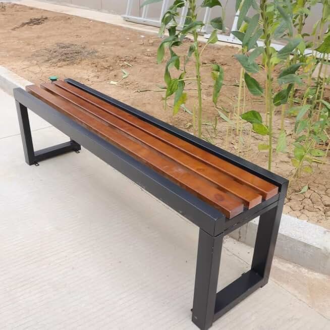 LITFAD Outdoor Bench Modern Simple Style Park Bench with Corrosion Resistant Metal Frame Multicolor Wooden Seating Garden Bench for Patio, Lawn, Yard, Porch - Walnut/Black, 71" L x 14" W x 18" H