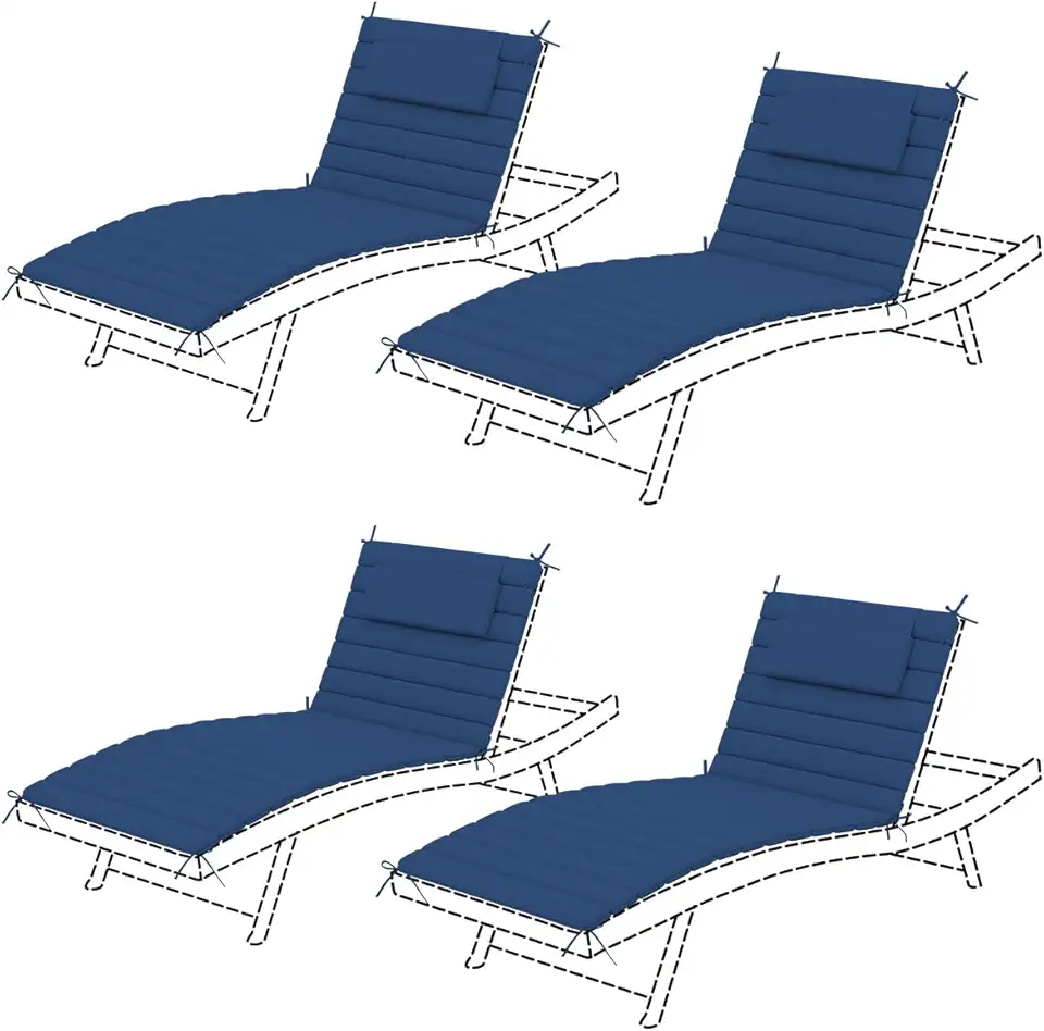Sundale Outdoor Olefin Quilted Lounge Cushion Set of 4, Patio Foldable Chaise Lounger Cushion, Water-Resistant Lounge Chair Pad with Straps Dark Blue, 72 x 21 inches
