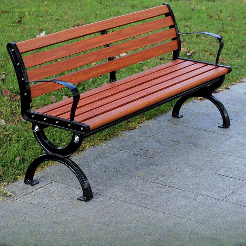 LITFAD Outdoor Bench Modern Park Bench with Corrosion Resistant Metal Frame, Red Brown Wooden Seating with Backrest, Garden Bench for Patio, Lawn, Yard, Porch - Type D, 47.2" L x 21.5" W x 29.5" H