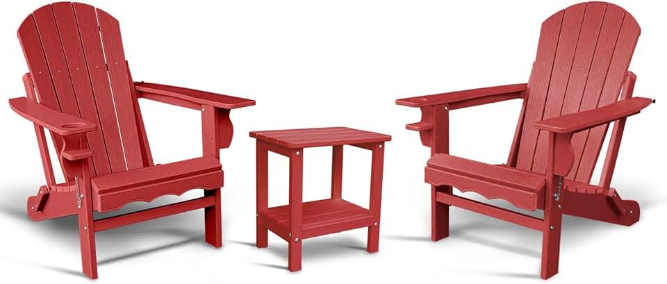 Folding Adirondack Chairs Weather Resistant, Outdoor HDPE Adirondack Chair with Side Table for Fire Pit, Patio, Deck, Backyard, Garden,Pool, Beach