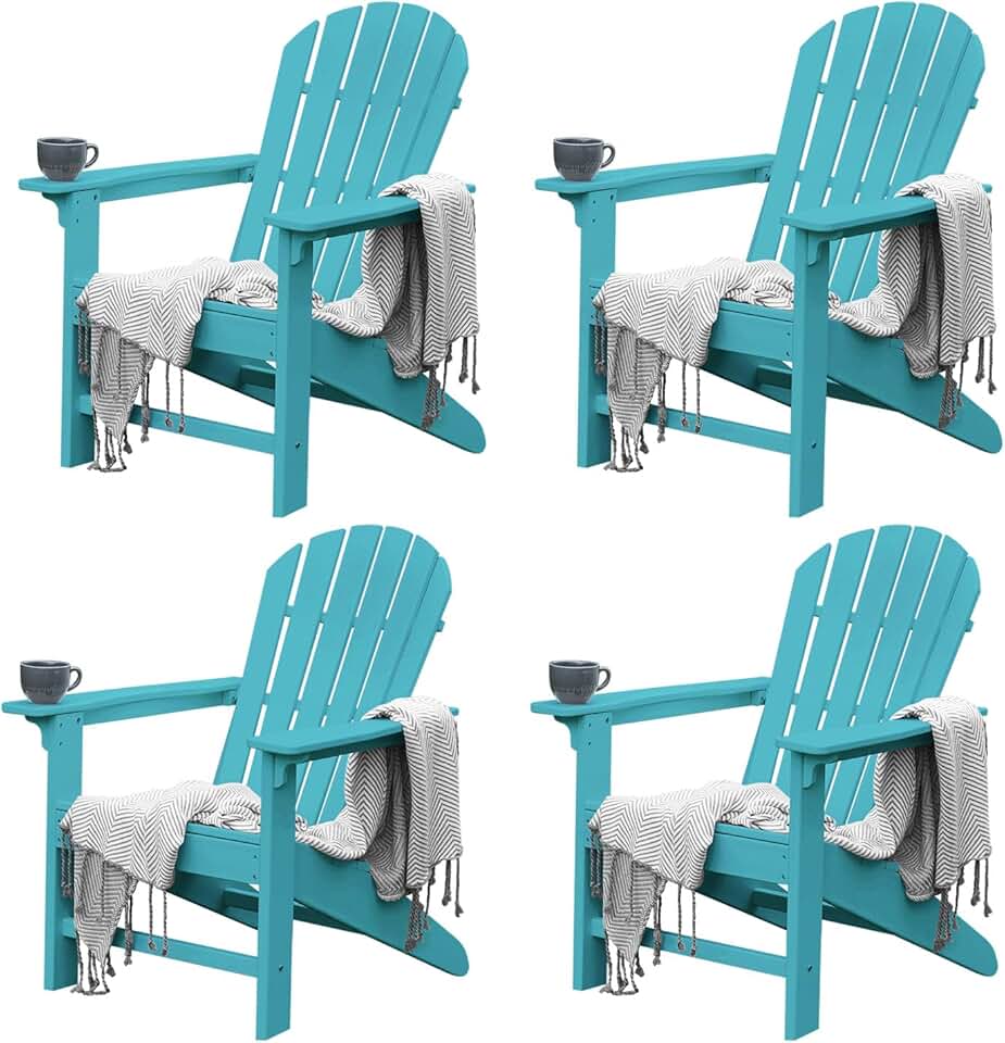 Adirondack Chair Set of 4, Large Lawn Chair Weather Resistance, 4 Steps Easy Assembly, Patio Chair for Fire Pit, Yard, Porch, Garden, Deck, Swimming Pool, Light Blue