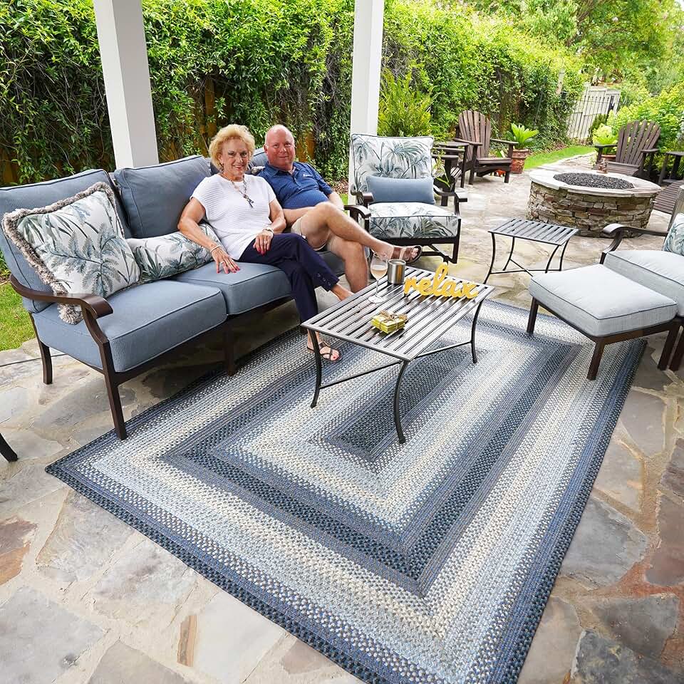 Homespice Juniper 4 x 6 Area Rug for Bedroom and Living Room, Also Ideal to Use as a Blue Outdoor Rug for Deck and Patio - Spill Proof and Stain Resistant - Reversible Indoor Outdoor Rugs 4x6 Feet