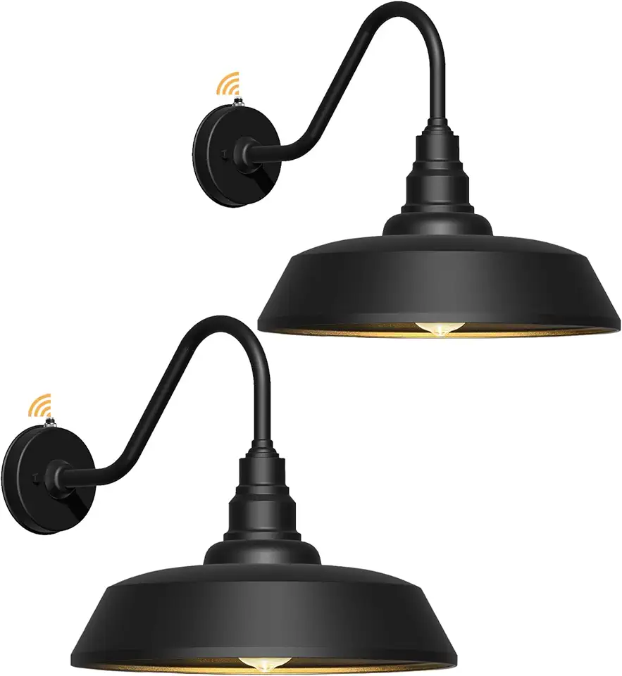 21 Inch Large Gooseneck Barn Lights Outdoor 2-Pack, Exterior Black Barn Light with Dusk to Dawn Sensor Waterproof and Rust-Resistant Wall Light for Farmhouse, Porch, Patio, Gooseneck Lighting…