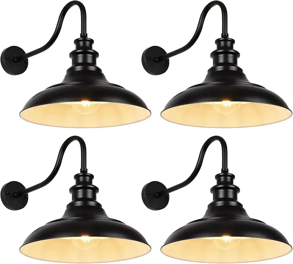 Exterior Farmhouse Gooseneck Barn Light, 16 Inch Vintage Outside Garage Light Fixtures, 4PCS Anti-Rust Waterproof Outdoor Light for Patio Frontdoor Entryway Doorway, Matte Black
