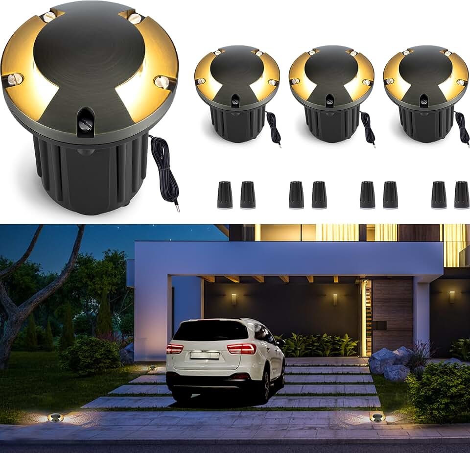 In Ground Well Lights Brass, Low Voltage Landscape Lights Outdoor, LED 12V Waterproof Driveway Lights, Wired 2 Way Turret Bronze for Path Tree Patio Without MR16 Bulb 4 Pack