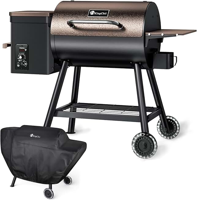 KingChii 456 SQ.IN Pellet Grill Smoker with Side Shelf, BBQ Grill with PID Temperature Control for Outdoor Cooking, BBQ Camping and Patio, Brown(Cover Including)