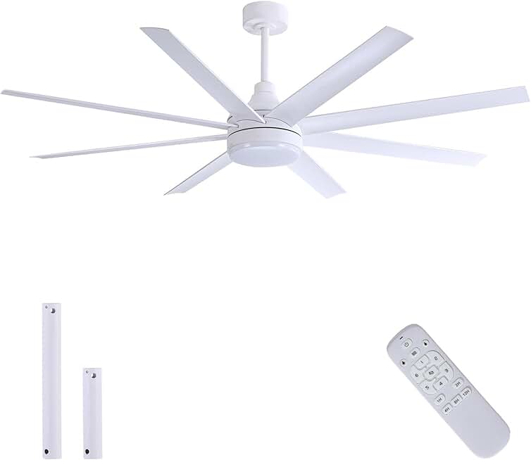 VONLUCE 72 Inch Ceiling Fans with Lights, Large Industrial Ceiling Fan and Remote, 8 Aluminum Blades, Quiet Reversible 6 Speed DC Motor, Metal Ceiling Fan for Bedroom Patios Farmhouse, Nickel