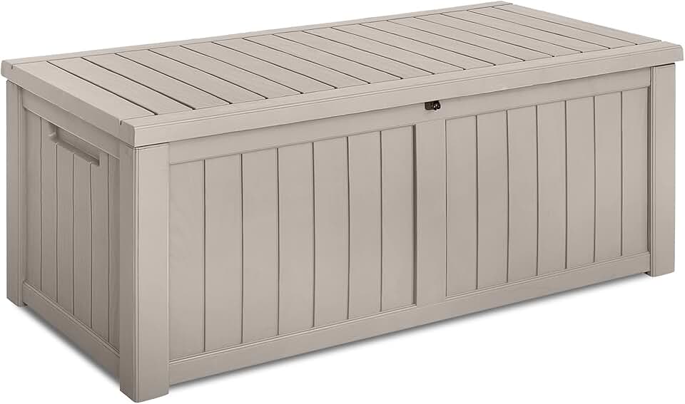 120-Gallon Deck Storage Box - Waterproof Outdoor Large Resin,Garden Tools, Patio Furniture & Sports Equipment, Water-resistant, Weatherproof, Lock Included (SLSTBX60)