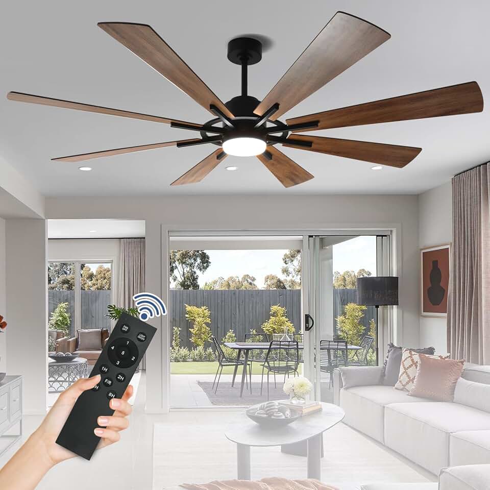 72" Farmhouse Ceiling Fan with Lights and Remote Control, Large Ceiling Fan with Lights 8 Blades 5 Speeds Reversible DC Motor Ceiling Fans for Outdoor Covered Patios, Black and Walnut