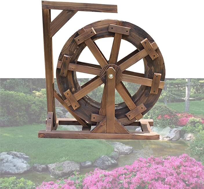 Water Wheel Fountain,Freestanding Waterwheel Fountain,Pool Circulation, Retro Decoration,Vintage Outdoor Indoor Balcony Ornamental Waterfall Fountain,for for Garden Patio Pond Pool (Size : Diameter 8