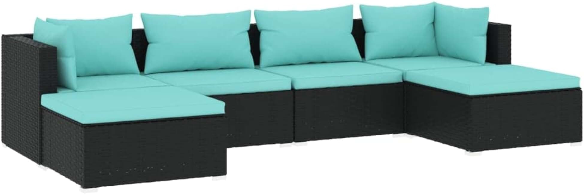 vidaXL 6-Piece Lounge Set - Outdoor Patio Furniture with Water-Resistant Cushions, Poly Rattan & Powder-Coated Steel Frame in Black, Modular Design for Customizable Arrangements