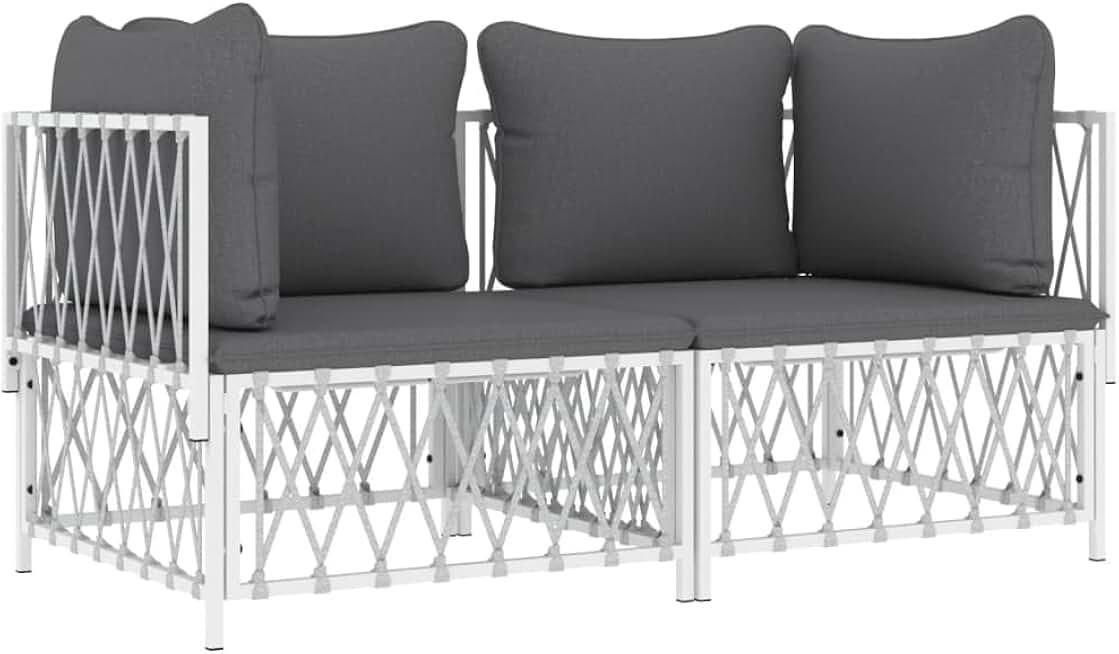 vidaXL Modern White Steel Patio Lounge Set - Durable Outdoor Seating with Comfortable Cushions and Modular Design for Personalized Arrangement