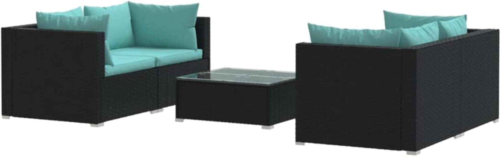 vidaXL 5 Piece Patio Lounge Set - Modular Design, Water-Resistant PE Rattan, Durable Powder-Coated Steel Frame, Comfortable Polyester Cushions, Includes Aqua Cushions and Black Glass Coffee Table