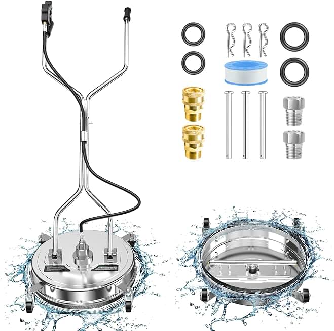 Aihand Pressure Washer Surface Cleaner, 20'' Stainless Steel Power Washer Surface Cleaner with 4 Wheels,Dual Handle Pressure Washer Attachment for Concrete/Sidewalks/Driveways/Patios Cleaning,4800PSI