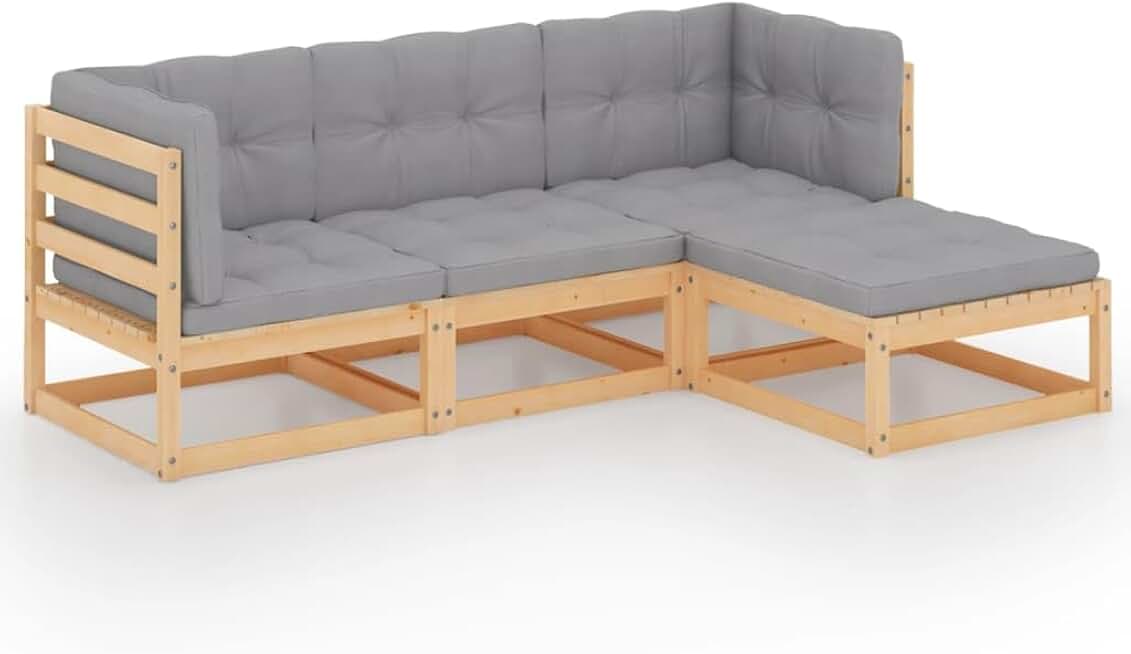 vidaXL Patio Lounge Set, 4-Piece Set with Cushions, Solid Pinewood Construction, Modular Design, Easy Maintenance - in Grey and Brown