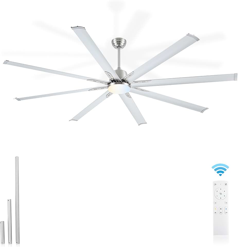 84 Inch Industrial DC Motor Ceiling Fan with LED Light and Remote Control,Large Ceiling Fan, 8 Aluminium Blades 6-Speed,Indoor & Outdoor Ceiling Fan for Patio,Garage,Shop,Library (Brushed Nickel)
