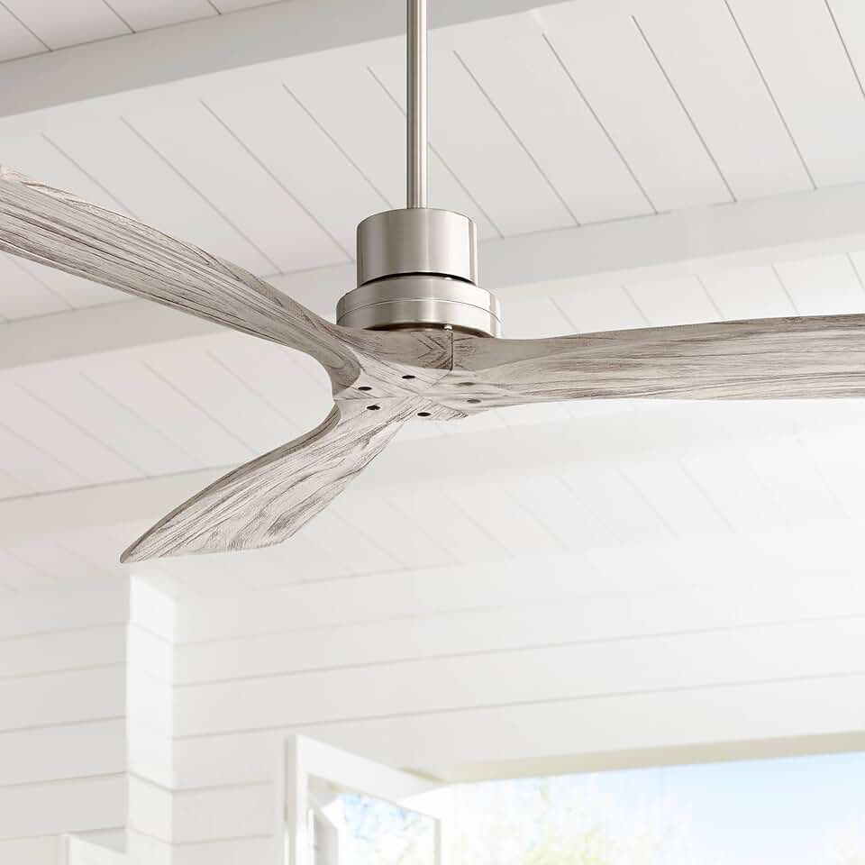 Casa Vieja 52" Delta-Wing DC Modern 3 Blade Indoor Ceiling Fan with Remote Brushed Nickel Silver Gray Solid Wood Damp Rated for Patio Exterior House Home Porch Gazebo Garage Barn