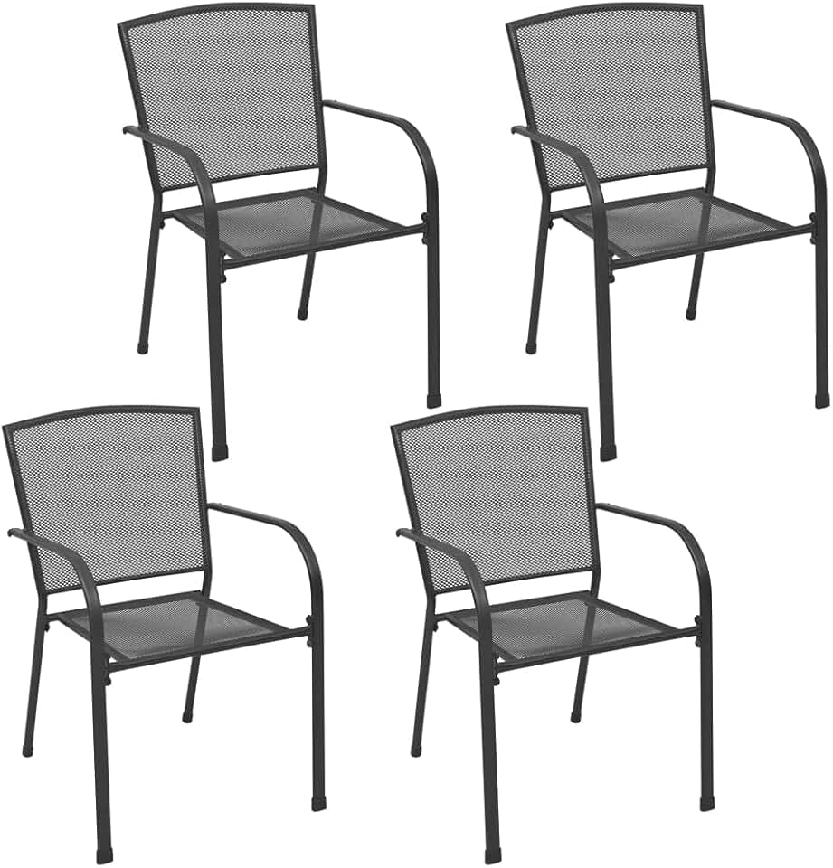 vidaXL Anthracite Patio Chairs Set of 4 - Weather-Resistant Steel Chairs with Mesh Design and Stackable Storage for Garden, Patio or Dining Room