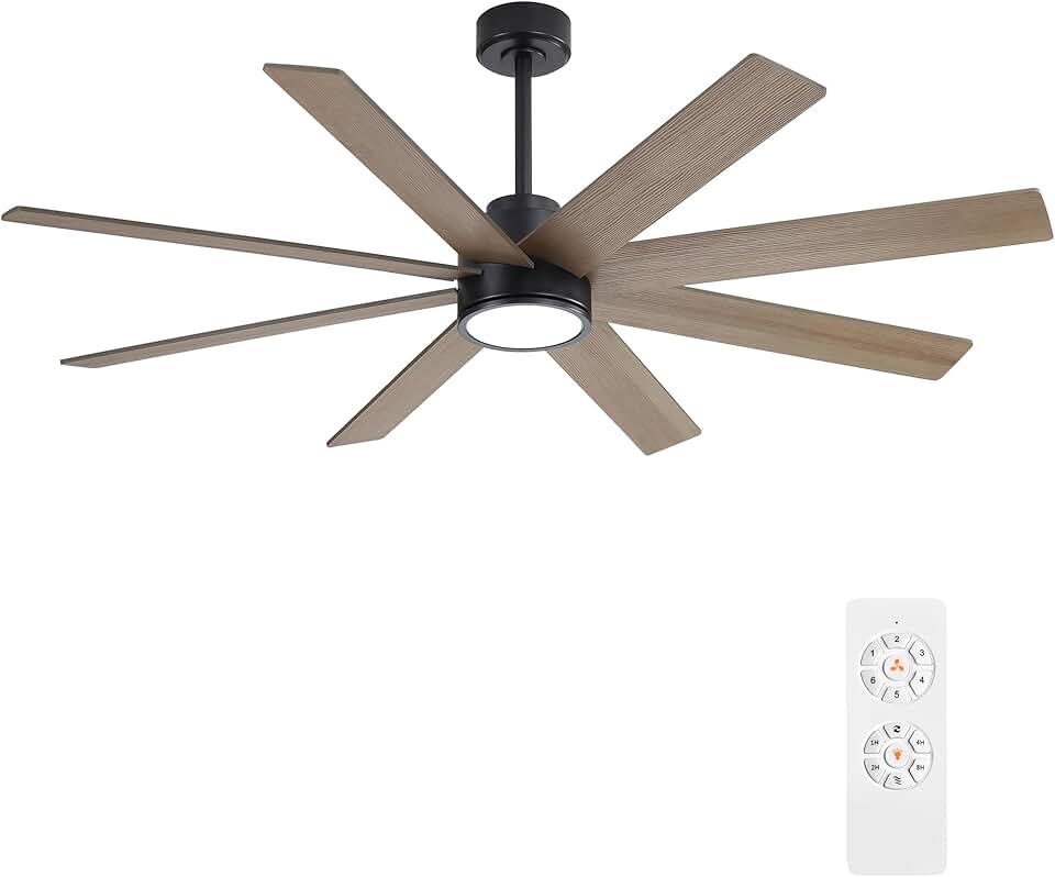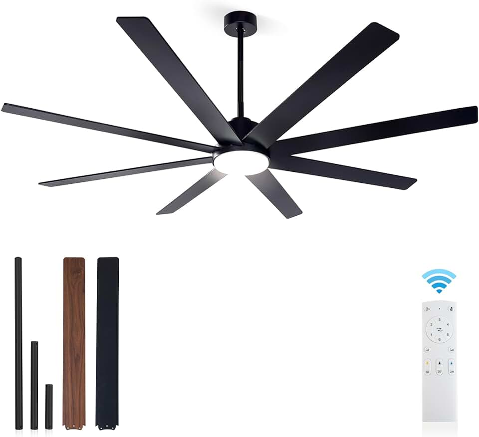 72 Inch Ceiling Fans with Lights and Remote Control, Black Large Ceiling Fans with 6 Speed DC Motor and 8 Wood Blades, Modern Ceiling Fans for Indoor/Outdoor Living Room, Farmhouse and Patio