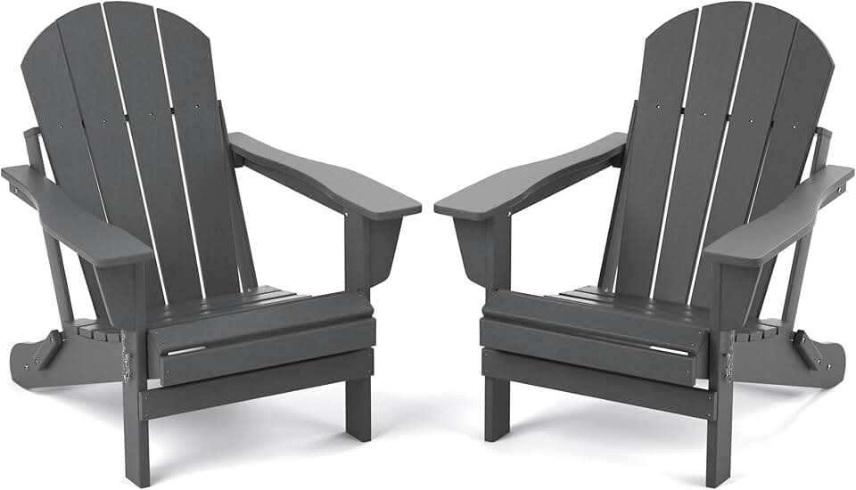 TORVA Folding Adirondack Chair Set of 2, Fire Pit Chair,Patio Outdoor Chairs All-Weather Proof HDPE Resin for BBQ Beach Deck Garden Lawn Backyard(Gray Color)