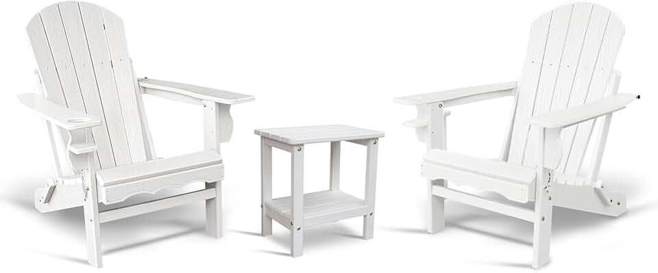 Folding Adirondack Chairs, Plastic HDPE Adirondack Chairs with Side Table, Modern Adirondack Chairs Weather Resistant, Widely Used in Patio, Front Porch, Deck, Garden, Fire Pit White