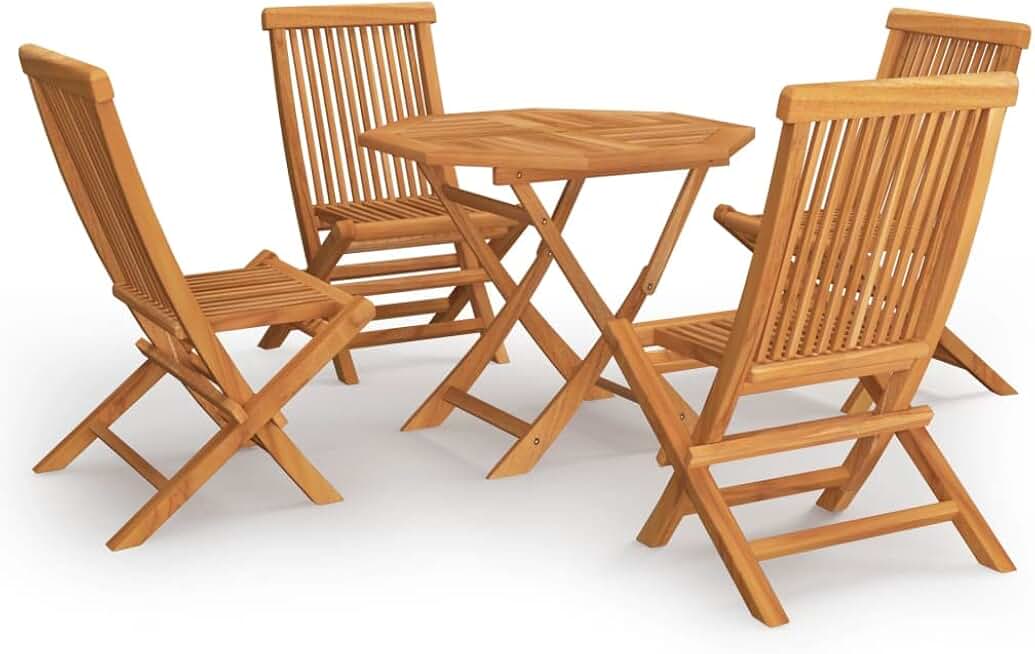 vidaXL 5 Piece Patio Dining Set Octagon - Fine Sanded Teak Hardwood with Waterbase Finish - Weather Resistant Outdoor Furniture - Foldable Design for Space Efficiency