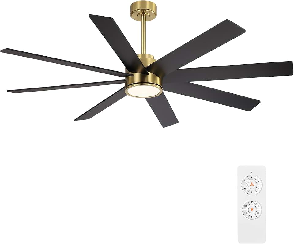 WINGBO 60" Large DC Ceiling Fans with Lights and Remote, 3 Downrods, 8 Plywood Blades, 6-Speeds Reversible DC Motor, 3CCT, Indoor Ceiling Fan for Bedroom Living Room Patio, Brass and Black