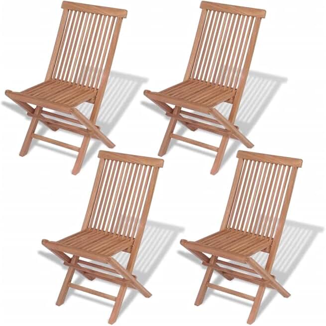 vidaXL Elegant Solid Teak Wood Folding Patio Chairs - Set of 4 - Durable Garden Furniture - Weather-Resistant - Outdoor Setting - Space-Efficient Design