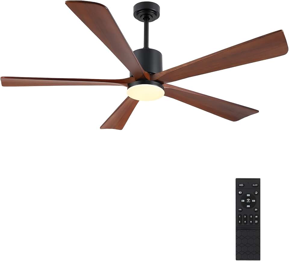 60" Wood Ceiling Fans with Lights - Farmhouse Outdoor Ceiling Fan with 5 Wooden Blades, 6 Wind Speeds and Timing, Modern Ceiling Fan with Remote Control for Indoor Outdoor Porches, Patios…