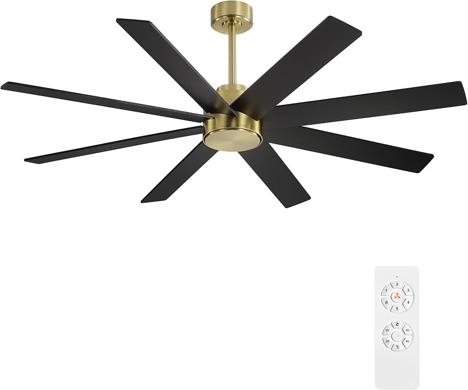 WINGBO 60" Large DC Ceiling Fans Without Lights, 3 Downrods, 8 Plywood Blades, 6-Speeds Reversible DC Motor, Indoor Ceiling Fan No Lights for Bedroom Living Room Patio, Brass and Black