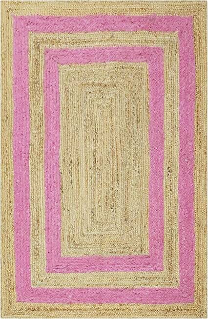 4x8 Natural Jute Rug Bohemian Decor Rug Area Rug for Living Room Beige Pink Kilim Rugs for Bedroom Kitchen Floor Carpet Jute Indoor Outdoor Rug Home Decor Rug Patio Floor Carpet
