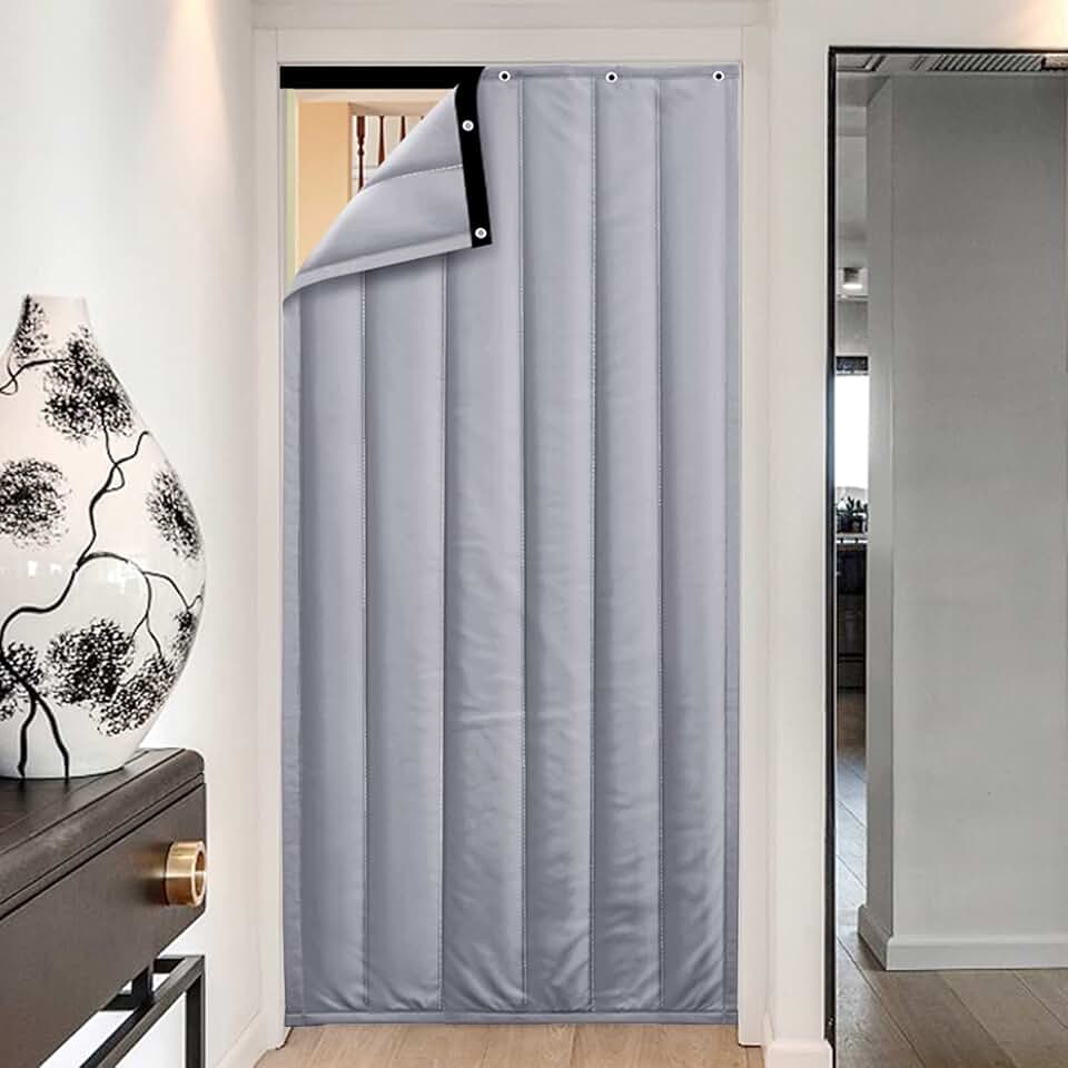 Thermal Insulated Door Curtains,Blackout Privacy Winter Thicken Cotton Window Curtain Doorway Drapes Darkening Noise Reducing Screen,PU Waterproof Soundproof Panel,for Home Patio Kitchen,Gray