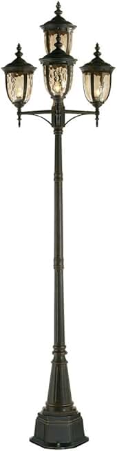 John Timberland Bellagio Vintage Outdoor Post Light Fixture Veranda Bronze 102" 4-Light Street Lantern Champagne Hammered Glass for Exterior House Porch Patio Outside Deck Garage Yard Garden
