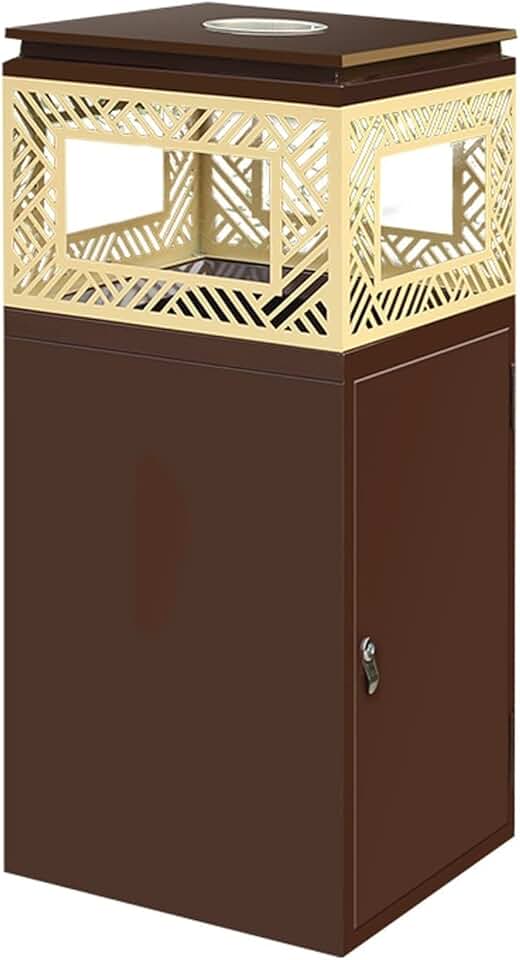 Outdoor/Indoor Trash Can Outdoor Trash Can Cylindrical Trash Can with Ashtray Panel Type Waste Storage Box Creative Retro Brown Park Courtyard Use in Backyard, Deck, or Patio (Color : A)