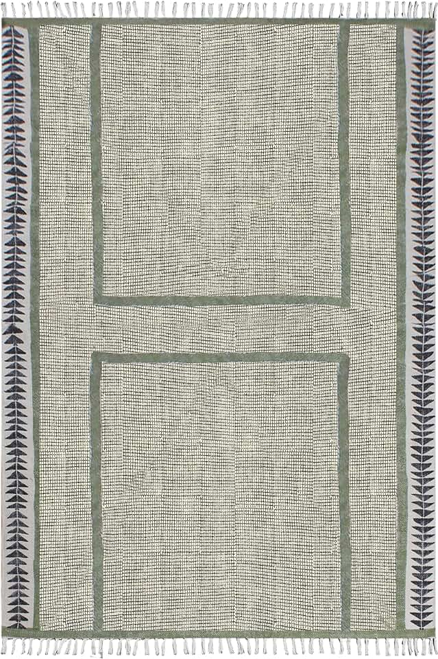 Kilim Rug 10 Square Area Rug Washable Throw Rug Green Black Cotton Area Rug Boho Rug Flatweave Rugs for Large Bedroom Square Dining Table Hall Room Patio Doormat
