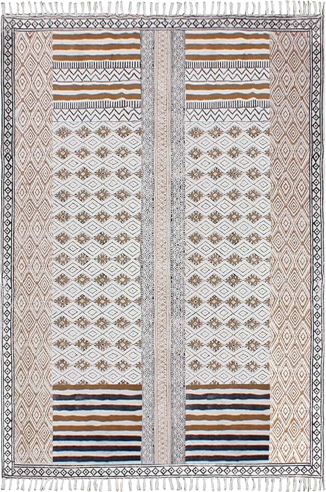 Kilim Rug 7x10 Area Rugs for Flatweave Rug Beige Multicolor Cotton Rug Washable Dhurrie Indoor Outdoor Use Rugs for Large Area Dining Room Living Room Hall Room Patio Doormat