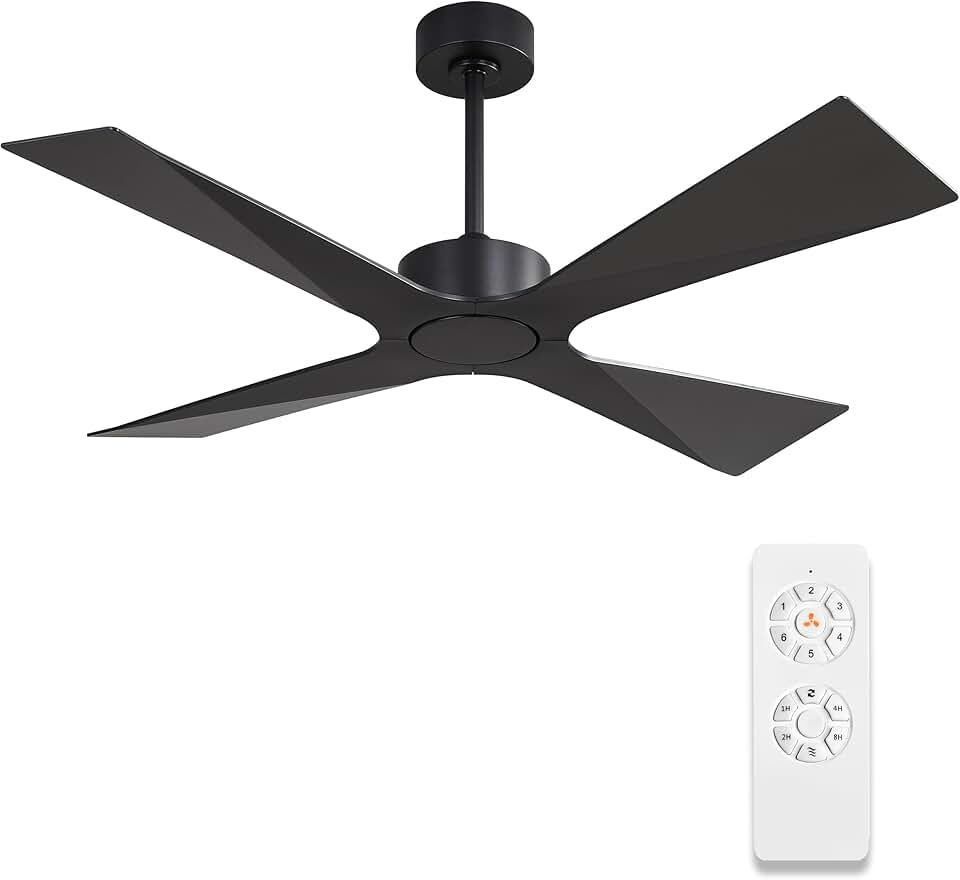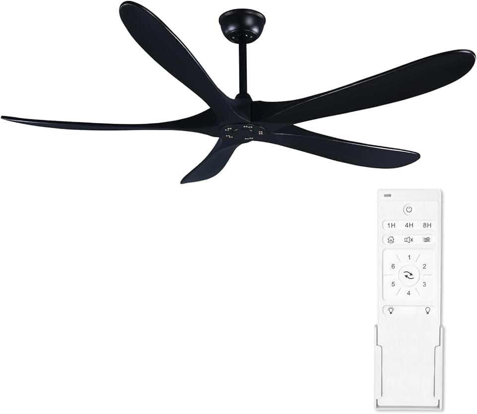 60 Inch Black Ceiling Fan No Light with Remote, 5 Solid Wood Blades, Reversible Noiseless DC Motor, Energy-Efficient Indoor/Outdoor Ceiling Fan for Living Room, Bedroom, Patio