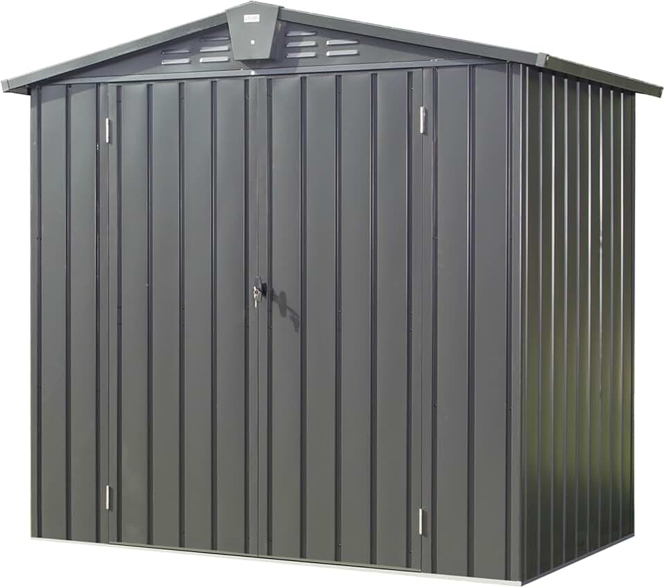 Outdoor Storage Shed 6.5'x 4.2', Metal Garden Shed for Bike, Trash Can, Tools, Lawn Mowers,Galvanized Steel Outdoor Storage Cabinet with Lockable Door for Backyard, Patio, Lawn (6.5x4.2ft, Black)