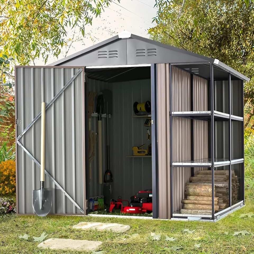 6 x 6 FT Metal Storage Shed with Shelves, Rack and Firewood Shelf, Small Outdoor Tool Utility Shed for Yard, Patio, Garden Organization